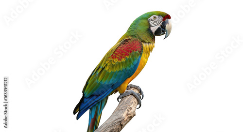 © Best JPG, Fototapeta premium Vibrant great green macaw perched on a branch against a black background