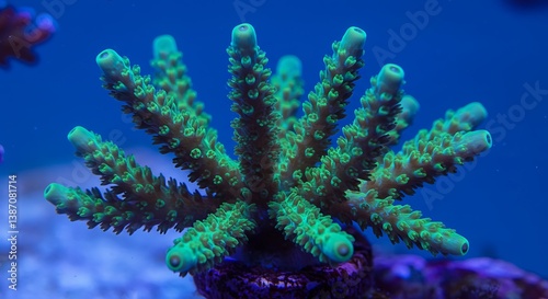 Fototapeta premium Vibrant Green Acropora Coral: Underwater Jewel AI Generated