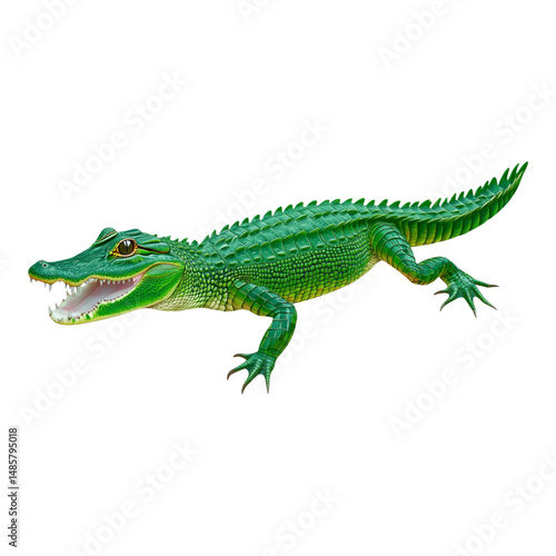 © wannapong, Naklejka premium Vibrant Green Alligator with Open Mouth in Detailed Illustration