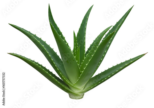 © Mumtaz, Obraz premium Vibrant Green Aloe Vera Plant Isolated on White Background