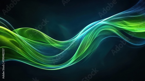 © Nowell Studio, Naklejka premium Vibrant green and blue flowing abstract wave pattern on dark background
