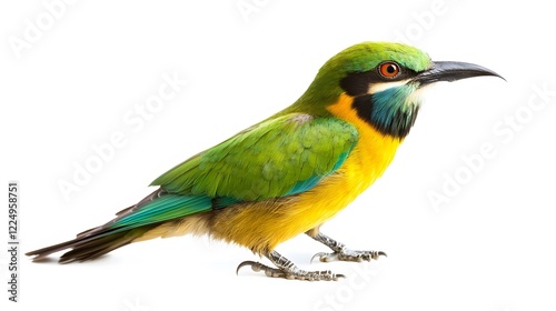 © Felippe Lopes, Obraz premium Vibrant green and yellow bird isolated on white background.