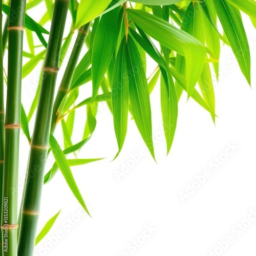 Naklejka premium Vibrant green bamboo leaves, sharp detail, clean white backdrop, bamboo, plant