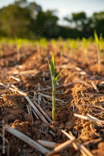 Fototapeta premium Vibrant green bamboo shoot emerging naturally, showcasing simple beauty and...