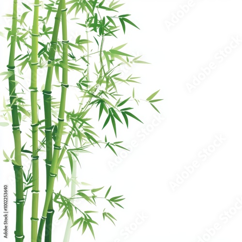 Fototapeta premium Vibrant green bamboo stalks with delicate leaves against a clean white...