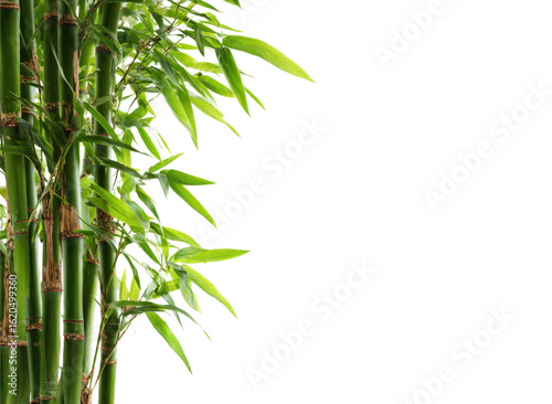 Fototapeta premium Vibrant green bamboo stalks with delicate leaves against a dark backdrop plant, Isolated, Png Transparent Background