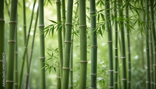 Fototapeta premium Vibrant green bamboo stalks with lush foliage create a calming, natural...