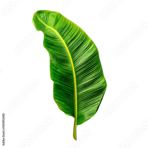 Fototapeta premium Vibrant Green Banana Leaf Isolated on White Background Tropical Plant Photography