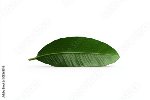 © Space Priest, Fototapeta premium Vibrant green banana leaf on white background