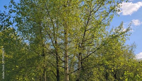 Obraz premium Vibrant Green Birch Illuminated by Sunlight