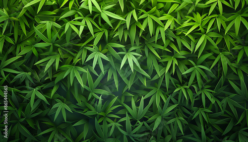 © Anatthaphon, Fototapeta premium Vibrant green cannabis leaves forming a dense, natural background. Perfect for nature, botany, and medicinal plant imagery.