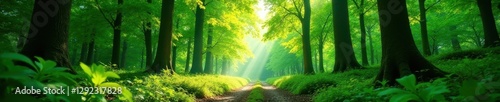 © Jiampoj, Obraz premium Vibrant green canopy, sunlight dappled forest floor, lush, biodiversity, pattern