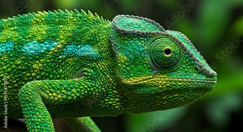 © Wiranata, Obraz premium Vibrant Green Chameleon Close-Up: Exotic Reptile Portrait