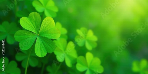 Naklejka premium Vibrant Green Clover Leaves in a Lush Natural Setting, Representing Growth,...