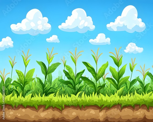 © Shehub, Fototapeta premium Vibrant Green Cornfield Landscape under Sunny Sky