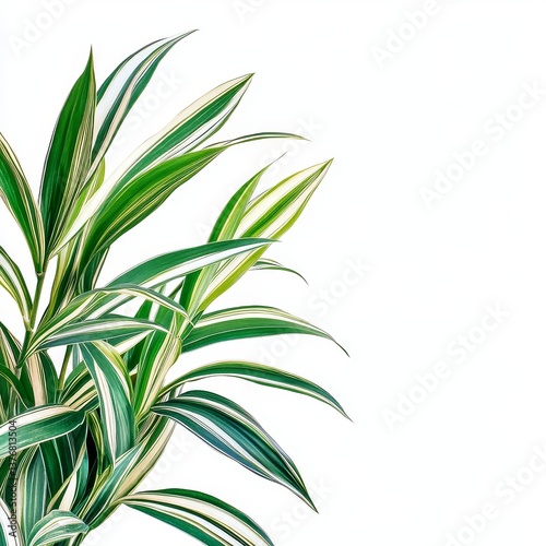 © quietmind_art, Fototapeta premium Vibrant green dracaena leaves with white stripes on white background.