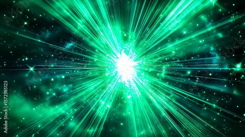 Fototapeta premium Vibrant green energy burst radiating through a starry cosmic expanse, evoking...