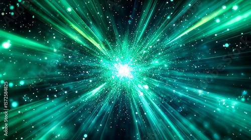 Obraz premium Vibrant green energy explosion radiating through starry cosmos, symbolizing...