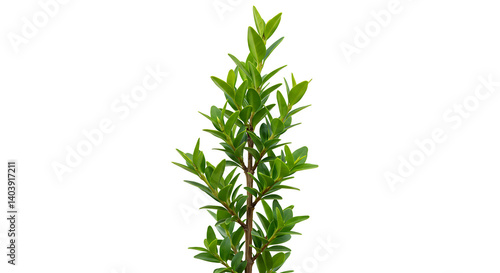 Fototapeta premium Vibrant green evergreen with a lush bushy structure, on a white background for home decor ideas.
