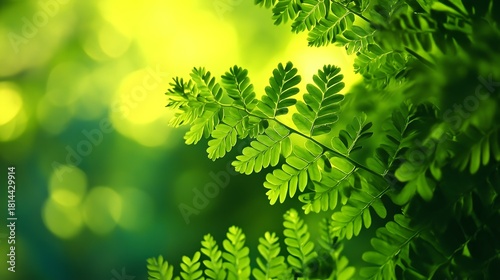 Obraz premium Vibrant green foliage catches the sunlight against a bright, blurred background