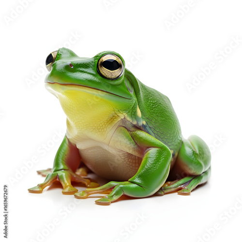 © Senhu, Obraz premium Vibrant Green Frog Amphibian Sitting.