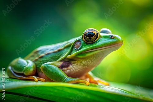 © Danicha, Naklejka premium Vibrant Green Frog Long Exposure Stock Photo - Nature Photography