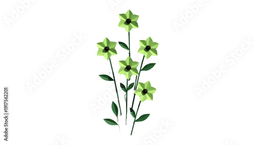 Fototapeta premium Vibrant Green Geometric Flowers Illustration for Fresh Eco Branding, Web Design, and Spring Growth