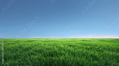 Fototapeta premium Vibrant Green Grass Landscape Under Clear Blue Sky Capturing the Essence of...