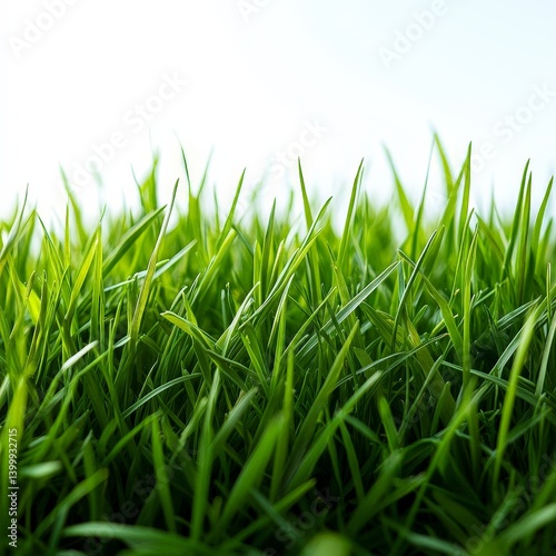 © BG_Illustrations, Fototapeta premium Vibrant Green Grass on White Background - Clean and Fresh Nature Image