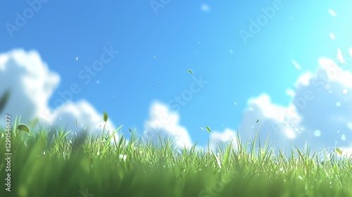© Parjan, Obraz premium Vibrant Green Grass Under a Sunny Blue Sky