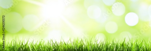 © Ilja, Obraz premium Vibrant Green Grass with Sunlight and Bokeh Effect, Ideal Spring or Summer Background