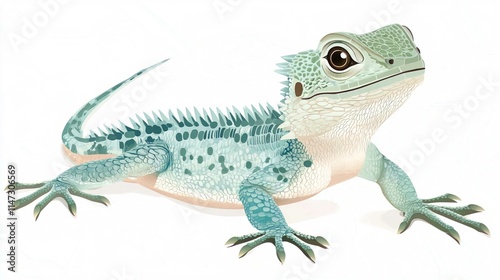 © Sam, Naklejka premium Vibrant Green Iguana Closeup in Nature Isolated Against White Background