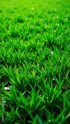 © Birdkab, Fototapeta premium Vibrant green lawn, lush texture, horizontal line , lawn, nature, background