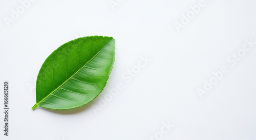 Obraz premium Vibrant green leaf isolated on clean white background, symbolizing nature and...