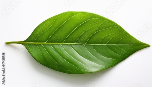 Obraz premium vibrant green leaf isolated on white background showcasing freshness and...