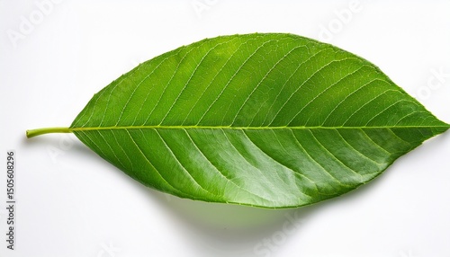 Obraz premium vibrant green leaf isolated on white background showcasing freshness and natural texture