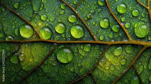 Fototapeta premium Vibrant Green Leaf with Dew Drops Macro Nature Background Image