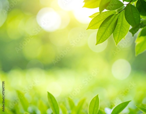 © Enak, Naklejka premium Vibrant green leaves and sunlight