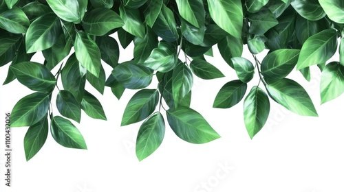 Obraz premium Vibrant green leaves cascading against a white background, creating a fresh,...