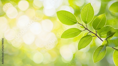 Naklejka premium Vibrant Green Leaves in Sunlight Soft Focus Background