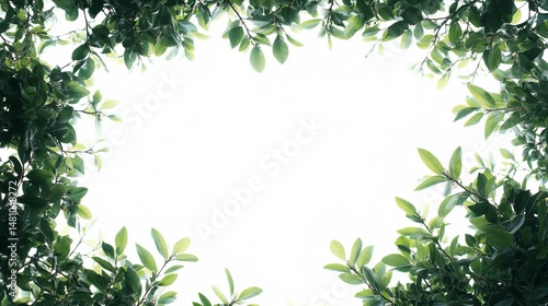 © Harry, Naklejka premium Vibrant Green Leaves Natural Frame Spring Summer Lush Foliage White Background Botanical Illustration Fresh Greenery Organic Nature Design Element