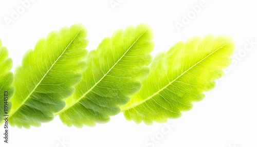 © Lailatul, Fototapeta premium Vibrant green leaves, nature backdrop, isolated on white, ideal for design