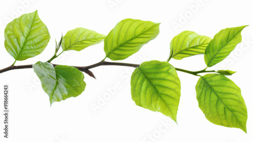 Fototapeta premium Vibrant green leaves on a branch, isolated