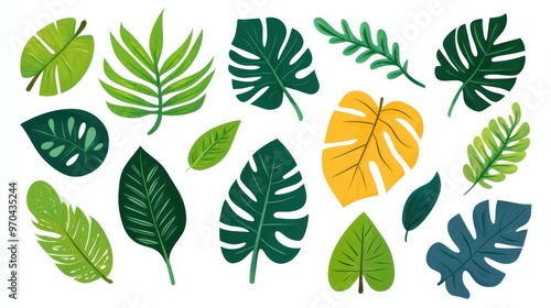 Obraz premium Vibrant green leaves on a clean white backdrop, showcasing modern flat design...