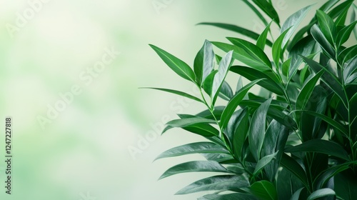 © ImagineWorld, Obraz premium Vibrant Green Leaves on Soft Background Representing Renewable Energy and Sustainability