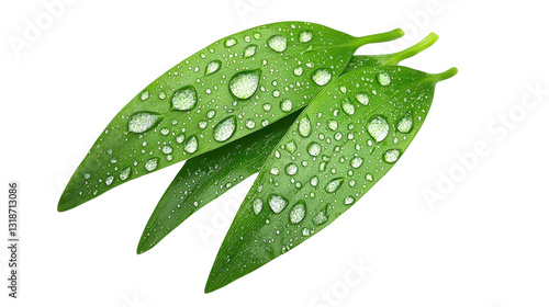 © Nana, Fototapeta premium Vibrant Green Leaves with Water Droplets on Transparent Background