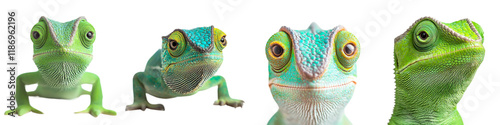 Fototapeta premium Vibrant Green Lizards with Unique Features and Eye Patterns in Different Poses