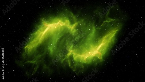 Fototapeta premium Vibrant green nebula with glowing yellow accents against a dark starry sky