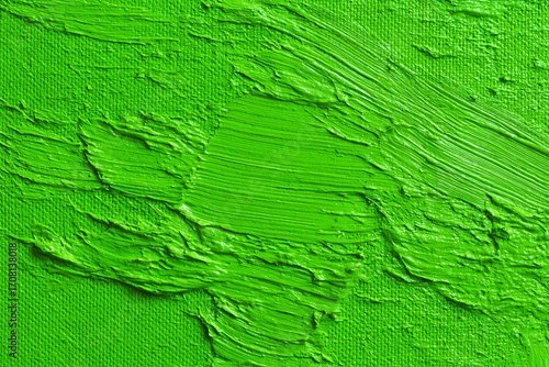 © ssshohan, Fototapeta premium Vibrant green paint texture thick strokes on canvas artistic background