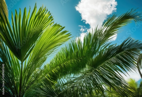 Fototapeta premium vibrant green palm leaves contrasting bright blue sky creating refreshing...